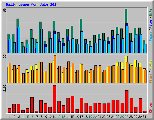 | Day | Hits | Files | Pages | Visits | Sites | KBytes | ||||||
