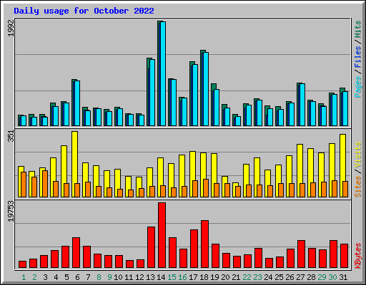 | Day | Hits | Files | Pages | Visits | Sites | KBytes | ||||||